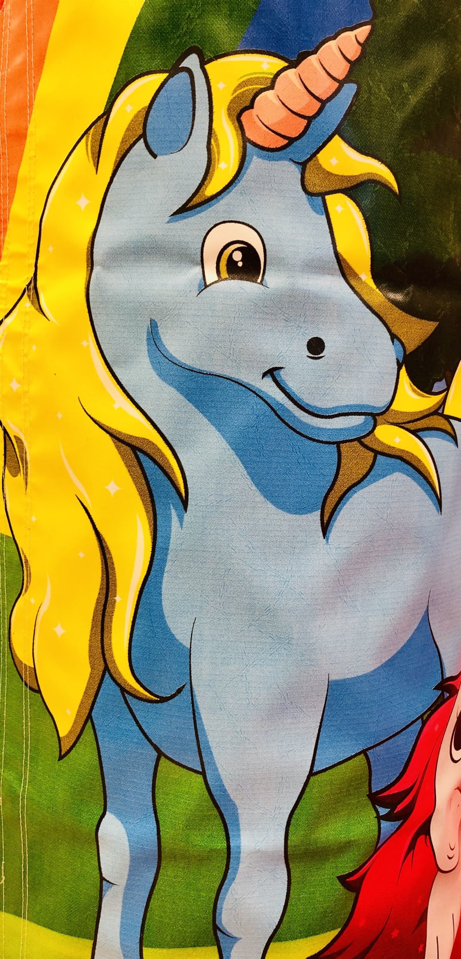 Our Low Height 'Unicorns' H-frame bouncy castle is a smashing bouncy castle which the kids have lots of fun on and is perfect for most sized gardens. This castle is popular for childrens parties and school events across the Mendips, and with it's superb digital printed artwork in a colourful 'Unicorns' theme and bright colours it is suitable for both boys & girls up to 1.3 metres in height. This castle also fits into most of the local village halls with it's lower height of 7ft 9in.