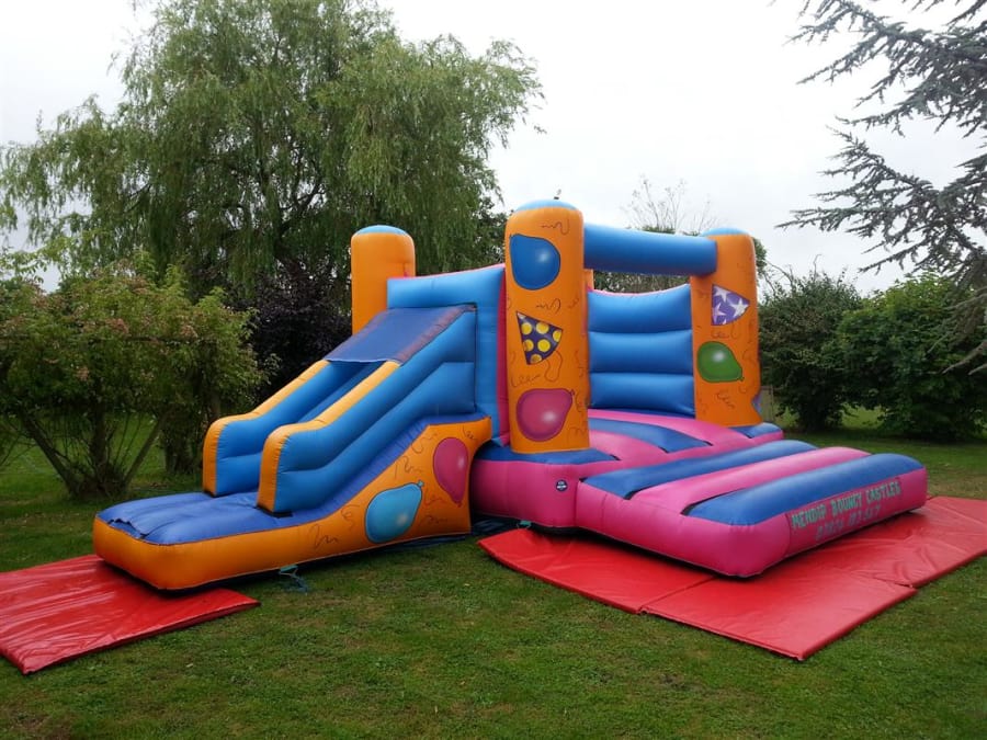 Our 'It's Party Time' bounce 'N' slide bouncy castle is a fantastic 12'x14' H-frame bouncy castle with attached slide which the kids love and have hours of fun playing on and is suitable for most medium to large gardens. This castle is extremely popular for childrens parties and school events across the Mendips, and with it's attractive party time balloon theme and bright colours this castle is suitable for both boys & girls up to 1.3m in height. With a height of 9ft this castle fits in most of the local villages halls.