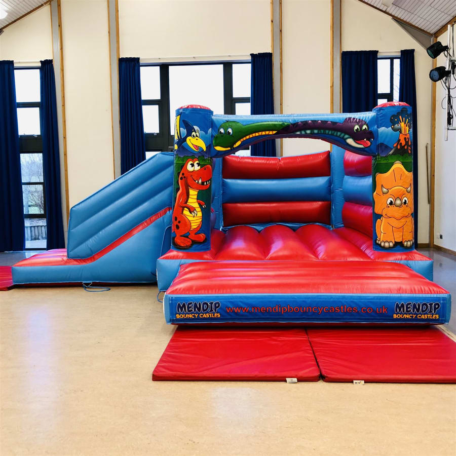 Our Low Height 'Dinosaurs' Bounce 'N' Slide bouncy castle is a smashing bouncy castle which the kids have lots of fun on and is perfect for most medium to large gardens. This castle is popular for childrens parties and school events across the Mendips, and with it's superb digital printed artwork in a colourful 'Dinosaurs' theme and bright colours it is suitable for both boys & girls up to 1.3 metres in height. This castle also fits into most of the local village halls with it's lower height of 7ft 9in.