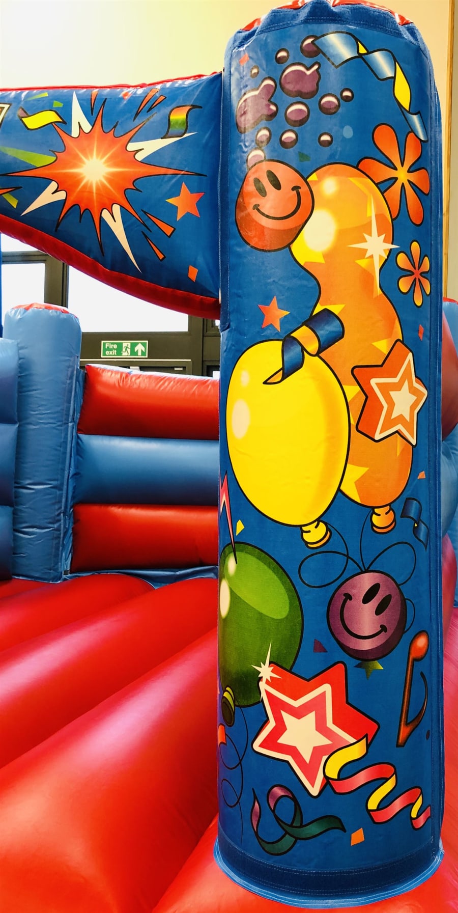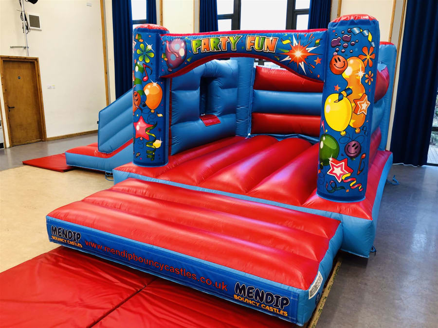 Our Low Height 'Carnival 'Party Fun' Bounce 'N' Slide bouncy castle is a smashing bouncy castle which the kids have lots of fun on and is perfect for most medium to large gardens. This castle is popular for childrens parties and school events across the Mendips, and with it's superb digital printed artwork in a colourful 'Carnival 'Party Fun' theme and bright colours it is suitable for both boys & girls up to 1.3 metres in height. This castle also fits into most of the local village halls with it's lower height of 7ft 9in.