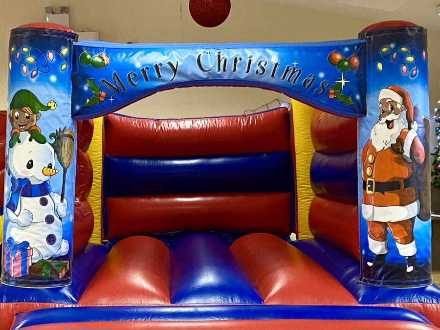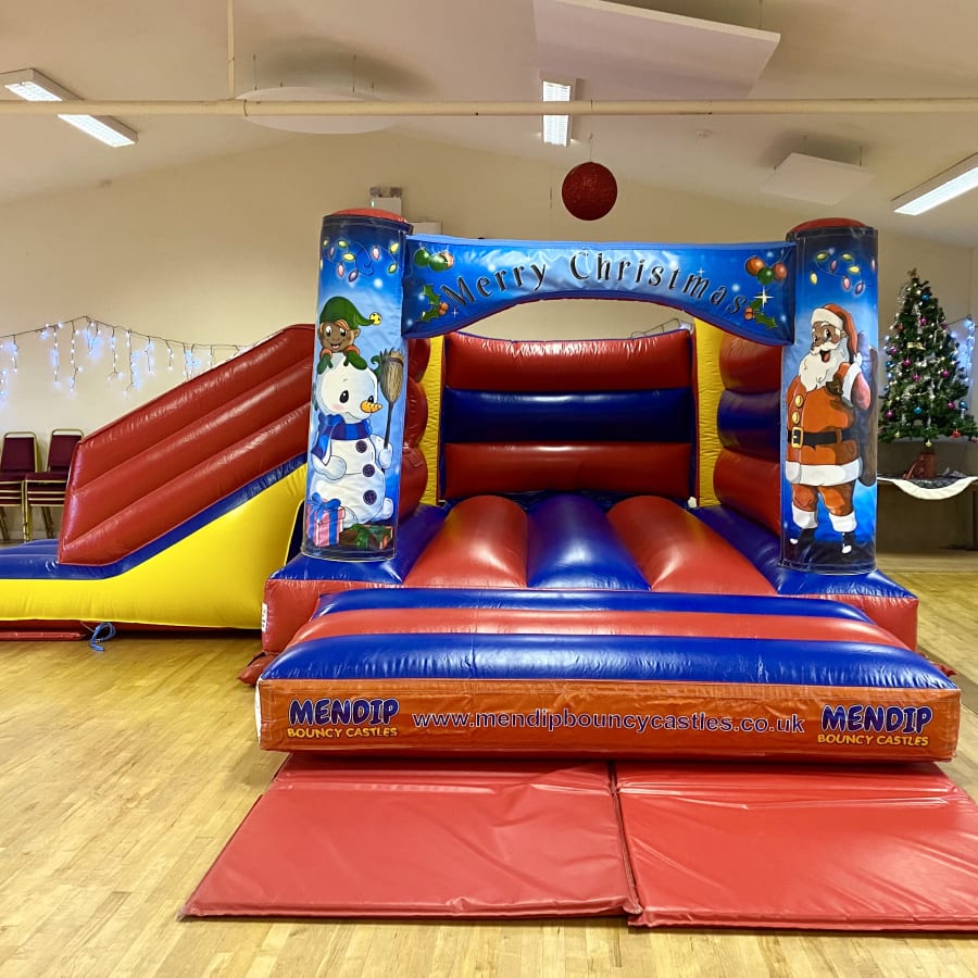 Our Low Height 'Christmas' Bounce 'N' Slide bouncy castle is a smashing bouncy castle which the kids have lots of fun on and is perfect for most medium to large gardens. This castle is popular for childrens parties and school events across the Mendips, and with it's superb digital printed artwork in a colourful 'Christmas' theme and bright colours it is suitable for both boys & girls up to 1.3 metres in height. This castle also fits into most of the local village halls with it's lower height of 7ft 9in.