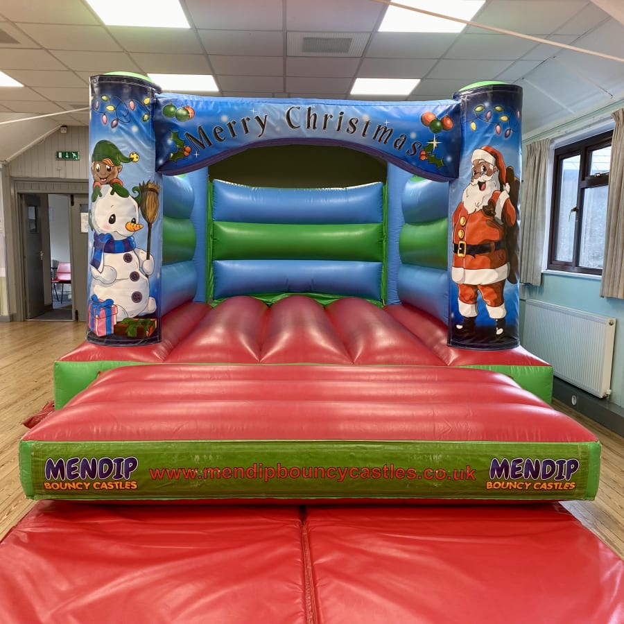 Our Low Height 'Christmas' H-frame bouncy castle is a smashing bouncy castle which the kids have lots of fun on and is perfect for most sized gardens. This castle is popular for childrens parties and school events across the Mendips, and with its superb digital printed artwork in a colourful 'Christmas' theme and bright colours it is suitable for both boys & girls up to 1.3 metres in height. This castle also fits into most of the local village halls with it's lower height of 7ft 9in.