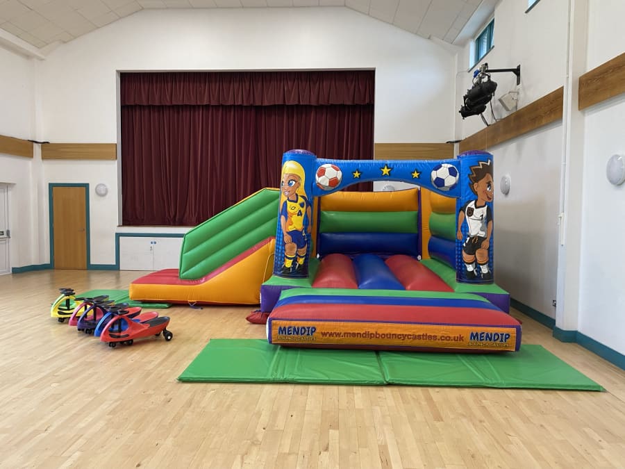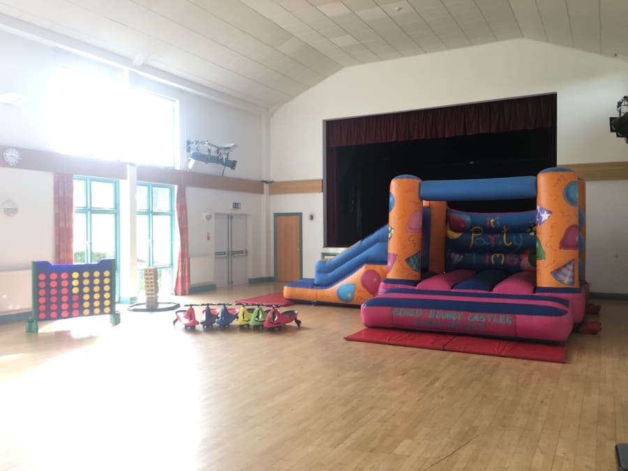 There is a large field in front of the hall suitable for any of our inflatables and multi-inflatable packages.